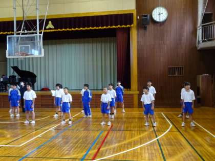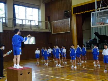 6時間目のクラス合唱練習の様子です。体育館や格技室など大きな場所では間隔をとって、マスクを外して練習します。
