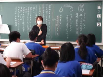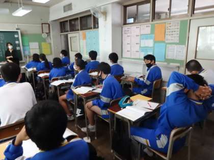 時間目、道徳の授業風景です。3年生は「ひび割れ壺 自分らしく生きるとはどういうことだろう」3年2組。