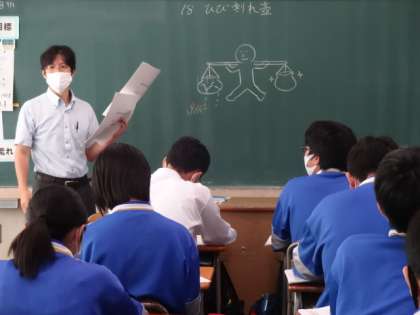 時間目、道徳の授業風景です。3年生は「ひび割れ壺 自分らしく生きるとはどういうことだろう」3年4組。