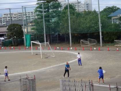 7組の体育です。球技。大分上手になってきました。