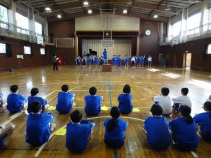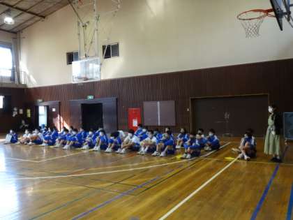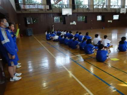 本番を明後日に控えた今日の6時間目の練習です。感染症対策をしながらも熱が入ります。3年生の練習を1年生が見学に来ています。