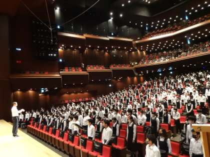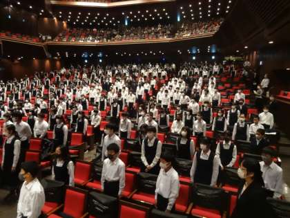 開会式。校歌斉唱。