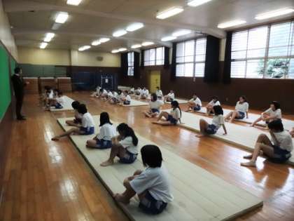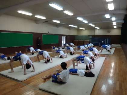 1年4・5組、体育女子。全員ブリッジ、すごい!
