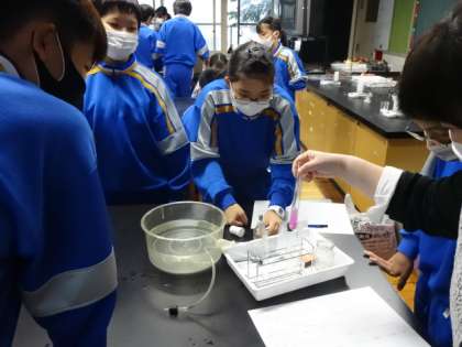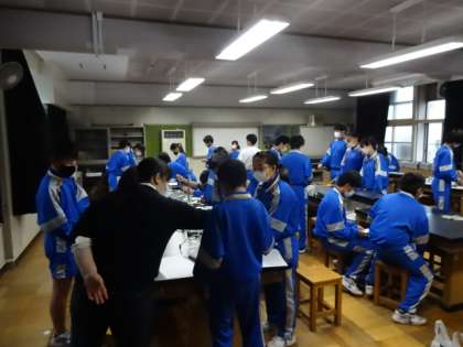 2年2組、理科。「炭酸水素ナトリウムの分解」