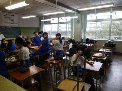 トイレ工事のために中央校舎に移動していた1年生が、今日の3クラスの引っ越しで、全クラス元の教室に戻りました。1組。