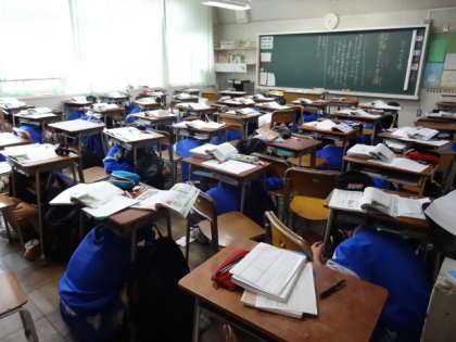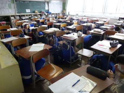 1時間目終了5分前に実施しました。地震想定の避難訓練です。全学年しっかり避難行動がとれました。