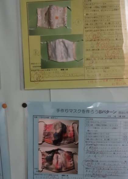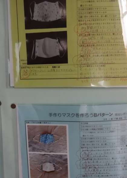 被服室前の掲示です。休校中に作製したものです。