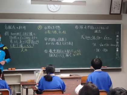1年2組、数学。「方程式の利用」
