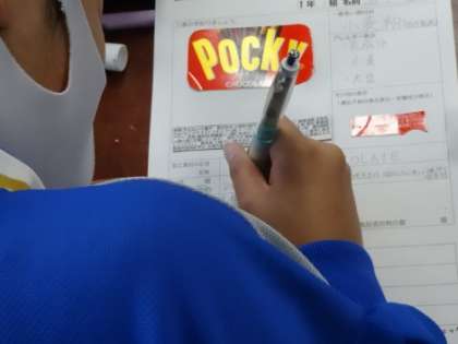 1年3組、家庭科。「加工食品の表示を読みとろう」