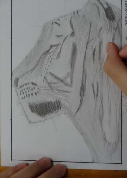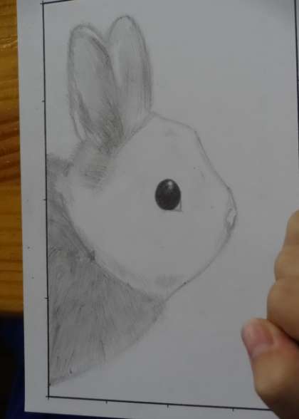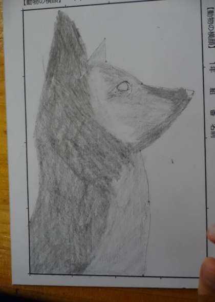 1年5組、美術。「細部を描き込み質感を表そう」
