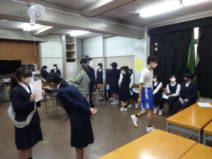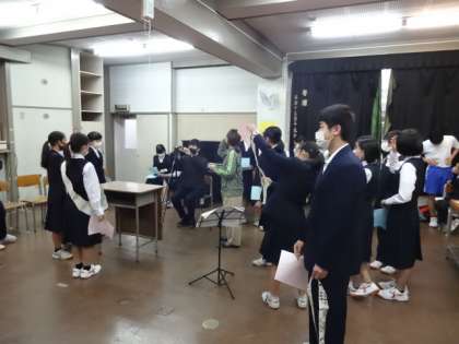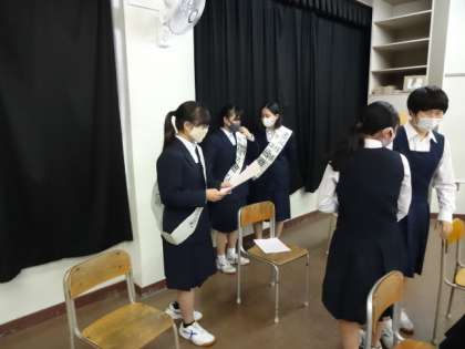 22日(木)に行われる生徒会役員選挙。今年は感染症対策として、事前に立会演説をビデオに撮り、当日それを映すことにしました。今日はビデオ撮りの本番です。準備の様子です。