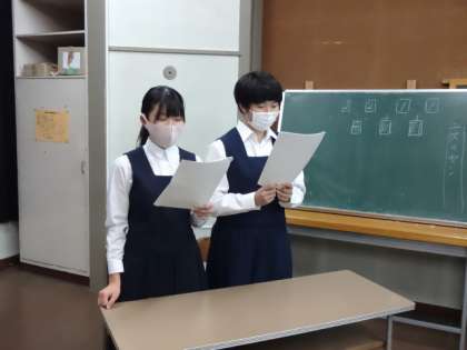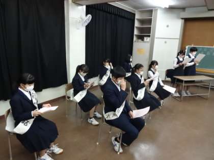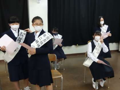 22日(木)に行われる生徒会役員選挙。今年は感染症対策として、事前に立会演説をビデオに撮り、当日それを映すことにしました。今日はビデオ撮りの本番です。準備の様子です。