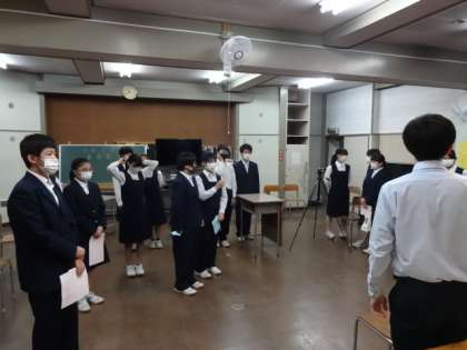 ビデオ撮りが終わりました。立候補者はもちろん、推薦者もしっかりと自分の思いを伝えることができていました。選挙管理委員の生徒もよく頑張っていました。