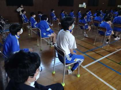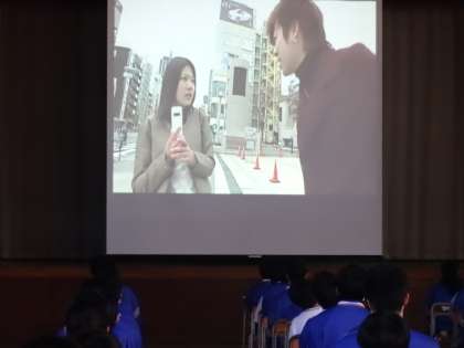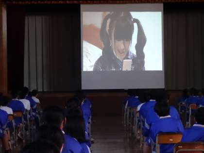 今年のセーフティ教室は、感染症拡大防止のため、1年と7組の生徒を対象に行いました。DVDで万引き等の窃盗、SNSの危険性を学びました。