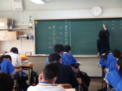 2年1組、国語。「平家物語 敦盛の最期」