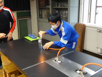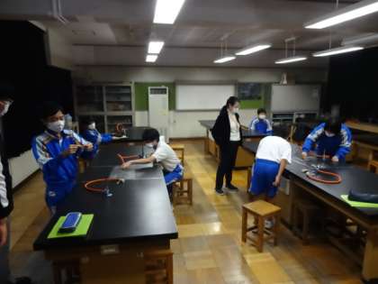 7組、理科。「ガスバーナーの使い方」