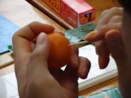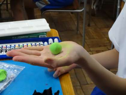 2年1組、美術。「粘土で和菓子作り 今日のめあて・粘土に慣れよう!」