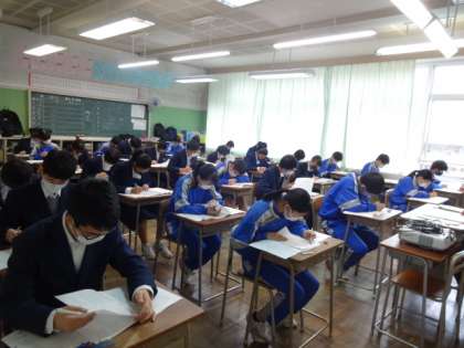 3年生は、2時間目から6時間目まで、実力テストです。ガンバレ!