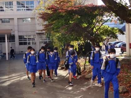 今朝は結構冷え込みました。今朝の登校の様子です。