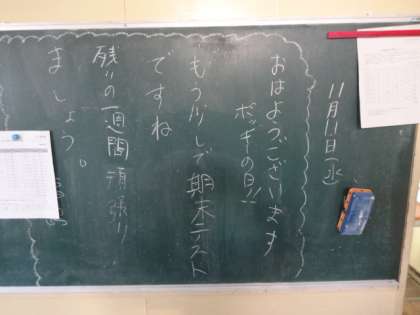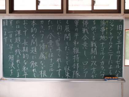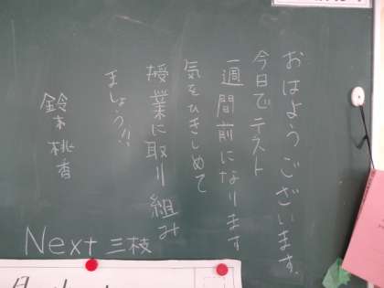 学年掲示板 今日のひとこと。テスト一週間前(1年)。もう少しで期末テスト(3年)。ナゴルノ・カラバフ(2年)。