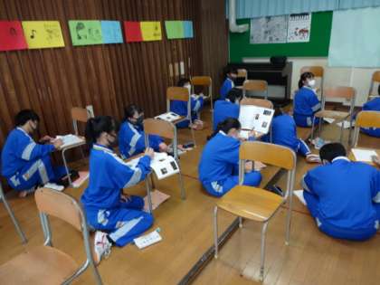 1年3組、音楽。「魔王」の学習。