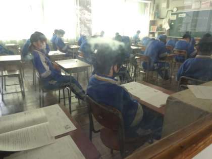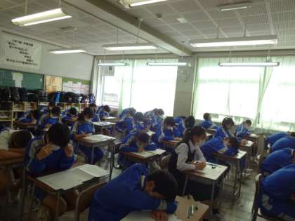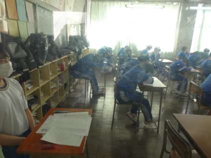 今日の3時間目、技術家庭科のテストです。1年生。