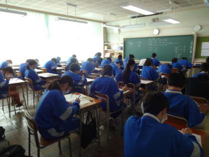 今日の3時間目、技術家庭科のテストです。2年生。