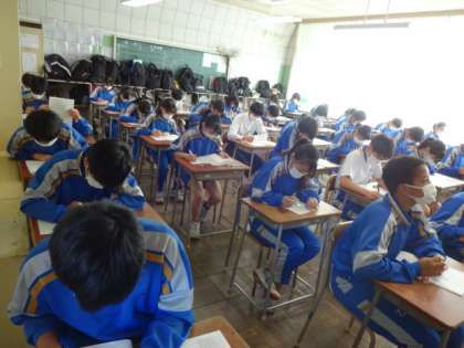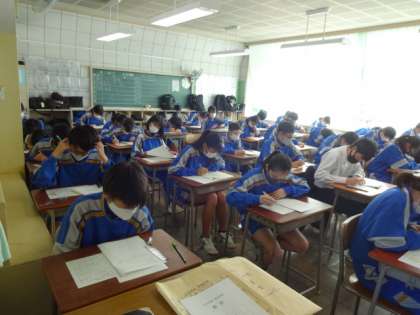 期末考査も最終日です。1時間目の数学。2年生。