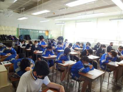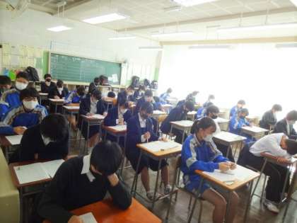 期末考査も最終日です。2時間目の保健体育。3年生。