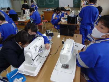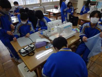 1年5組、家庭科。「ランチョンマットの作製」