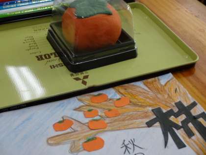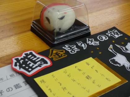 2年1組、美術。「粘土の和菓子」鑑賞会。