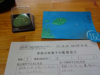 2年3組、美術。「粘土の和菓子」鑑賞会。