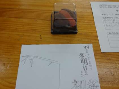 2年3組、美術。「粘土の和菓子」鑑賞会。