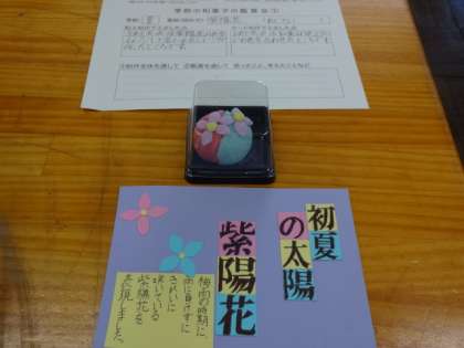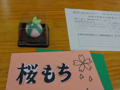 2年3組、美術。「粘土の和菓子」鑑賞会。