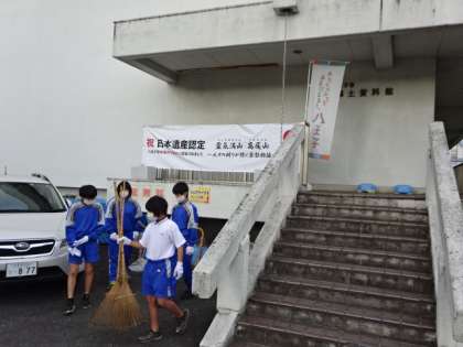 2年7組の生徒が、今日と明日、八王子市郷土資料館で職場体験を行っています。今日の午前中は、資料館の引っ越しに使う緩衝材の作製。午後は駐車場の落ち葉の片づけを行いました。