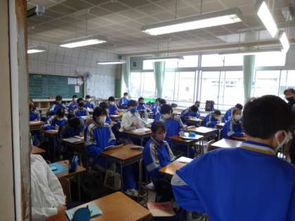 今日は寒い一日になりそうです。今朝の様子です。2年生。