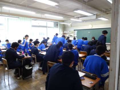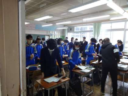 今日は寒い一日になりそうです。今朝の様子です。3年生。