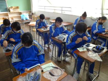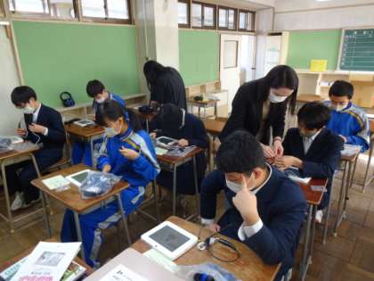 3年2組、英語。現1年生の都立高校入試で実施予定の「英語スピーキングテスト」。校内体験版プレテストを行いました。