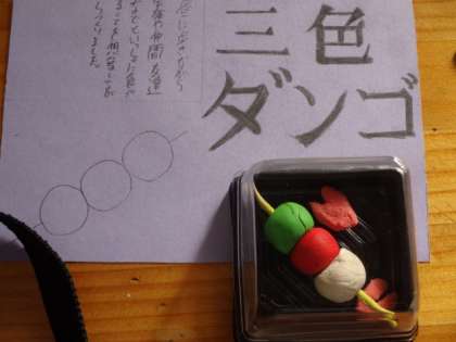 2年4組、美術。「粘土の和菓子」鑑賞会。