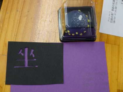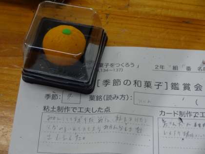 2年4組、美術。「粘土の和菓子」鑑賞会。