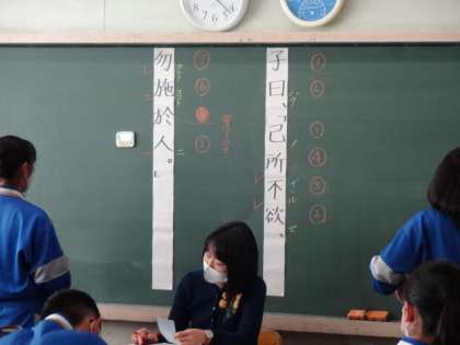 2年3組、国語。「暗唱テスト 論語」