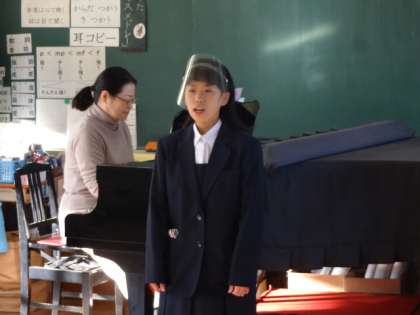 小学校と連携した活動です。合唱部が第八小学校を訪問し、6年生に向けて2曲披露して来ました。