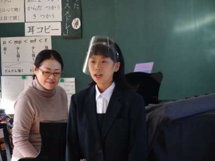 小学校と連携した活動です。合唱部が第八小学校を訪問し、6年生に向けて2曲披露して来ました。
