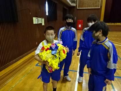 ボッチャ体験授業が終わりました。臨時に作ったボッチャのコートの片付けも、しっかり行ってくれました。
