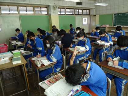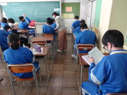2年3・4組、英語。「来週のスピーチ(将来の夢)原稿作成中」