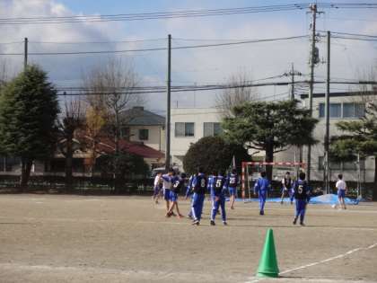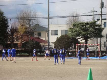 3年3・4組、体育男子。サッカー。