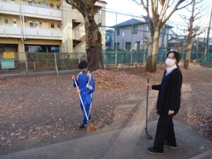 今朝は厳しい冷え込みでした。朝の様子です。1年生の男子生徒が、玄関前の落ち葉を、毎日掃除してくれています。助かります。ありがとう。