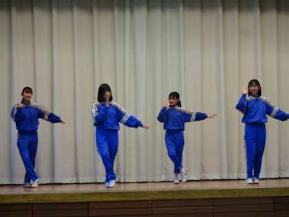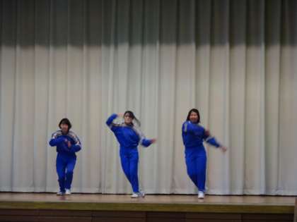 3年1・2組、保健体育女子。ダンスの中間発表です。