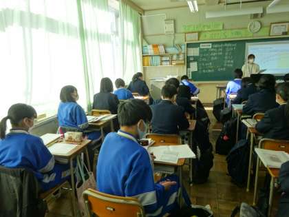 3年1組、家庭科。「高齢社会の特徴を知る」
