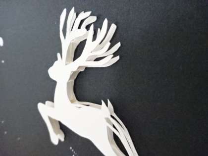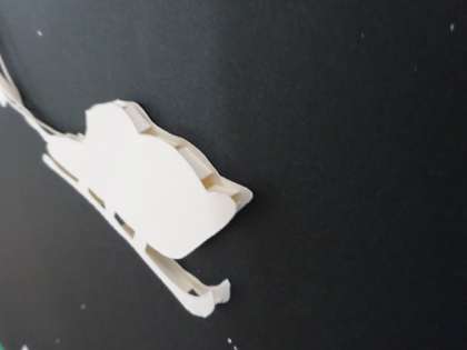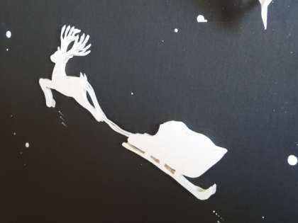 先頭のトナカイとそりは二重にしてあり、厚みがあって飛び出しています。ぜひよく見てください!